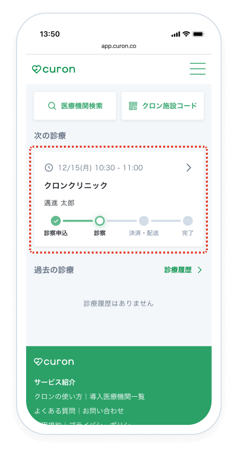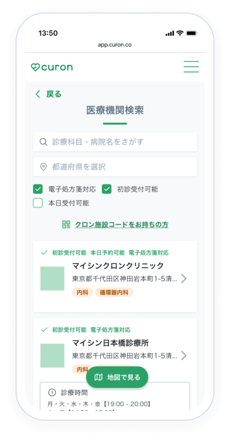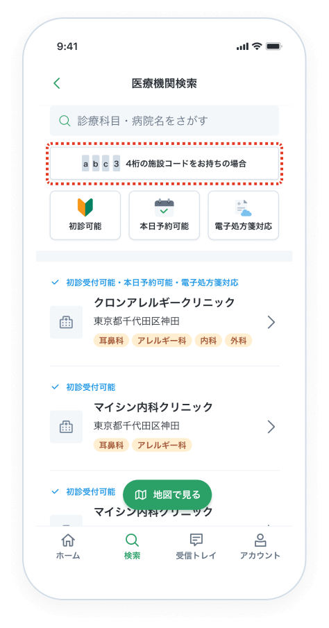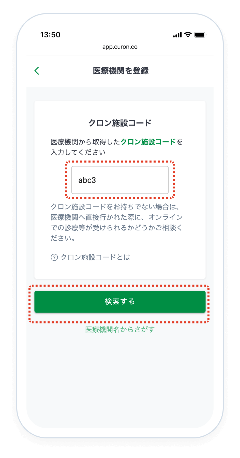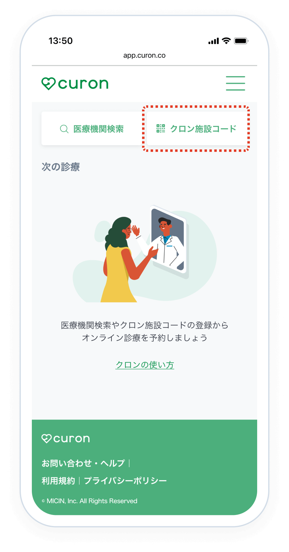 かかりつけの医師からクロンを使ったオンライン診療を承諾されている場合は、病院・クリニックから4桁のクロン施設コードを受け取ってください。