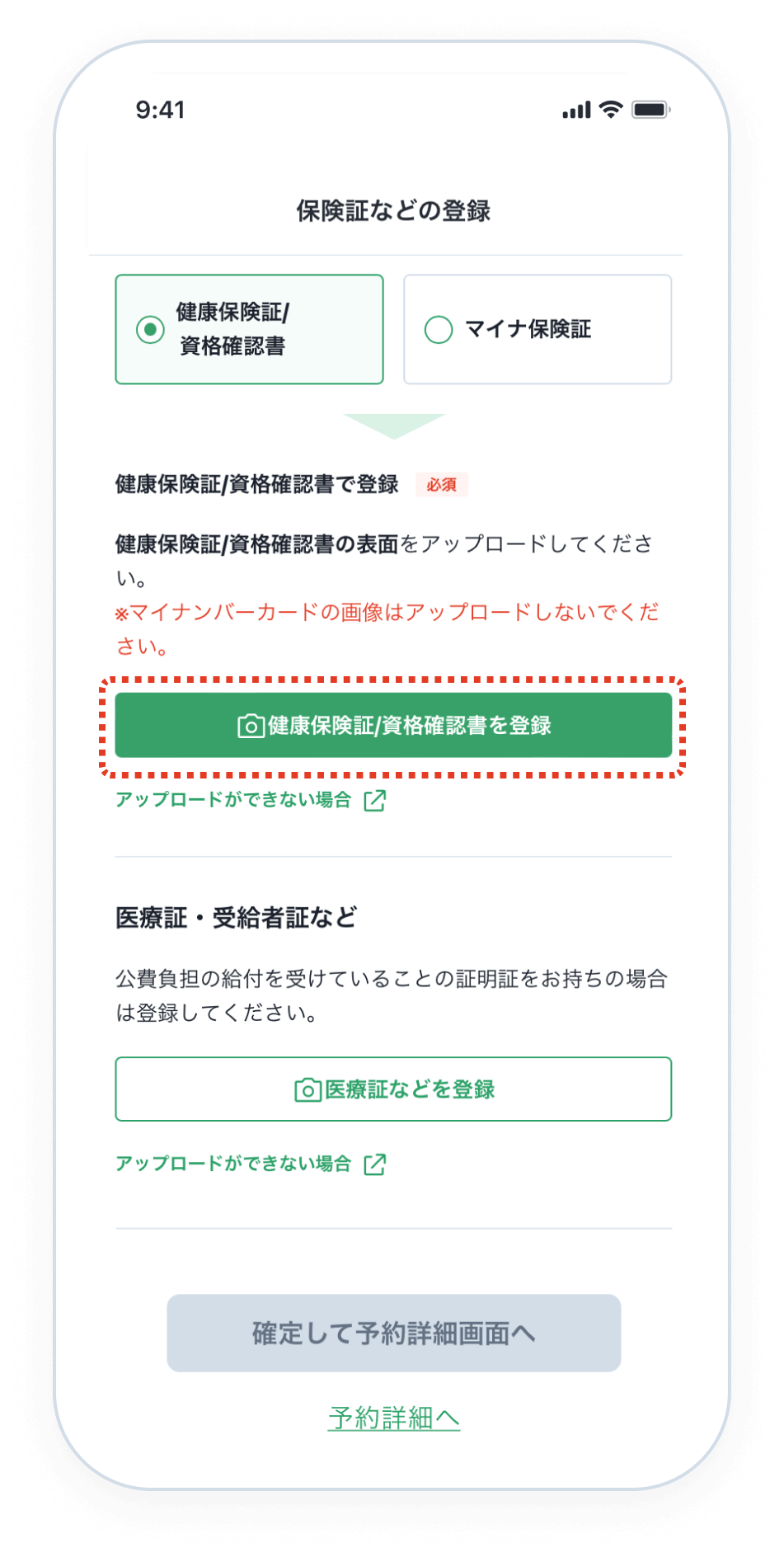 保険診療の場合は、診察回ごとに保険証/資格確認書を確認します。予約時や診察を受ける際には、必ずお手元にご用意ください。