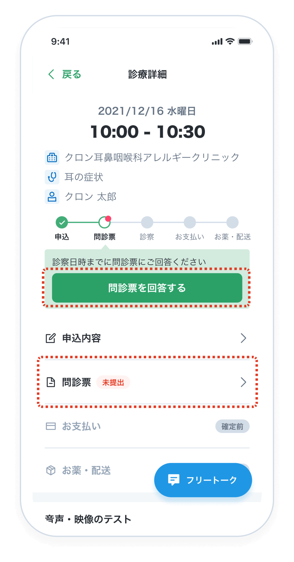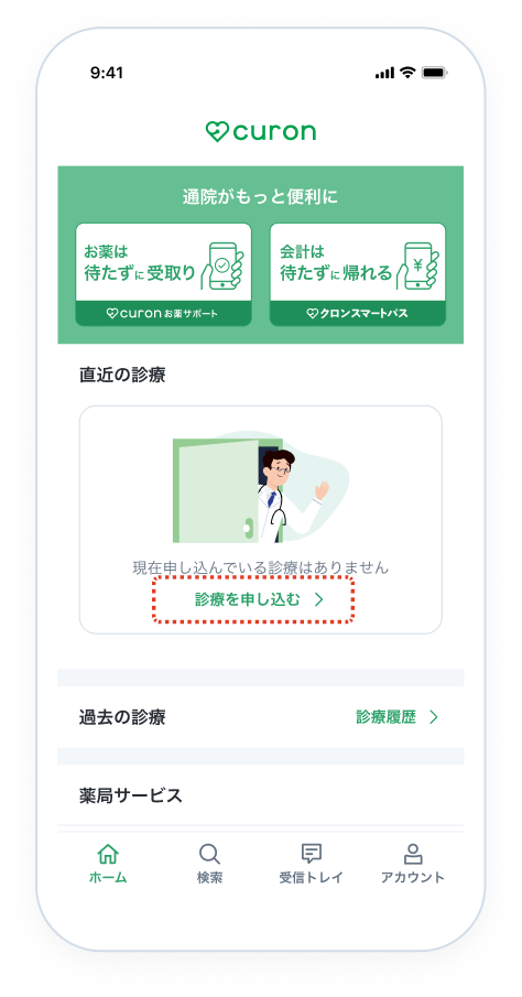 クロンは、かかりつけの医療機関と患者をつなぐ、オンライン診療サービスです。 スマートフォン上で、病院(クリニック)の予約・問診・診察・処方箋または薬の受け取り・決済までを行うことができます。